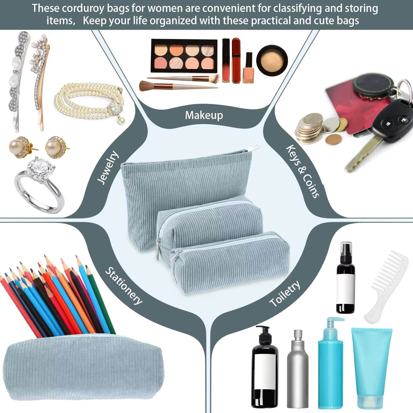Stay organized in style with the Corduroy Multi-Purpose Storage Pouch Set. This set includes three uniquely sized pouches designed to keep your essentials secure, accessible, and chic. Whether you're organizing your handbag, packing for a weekend getaway, or tidying up your vanity, these soft corduroy pouches are the perfect aesthetic and functional solution.