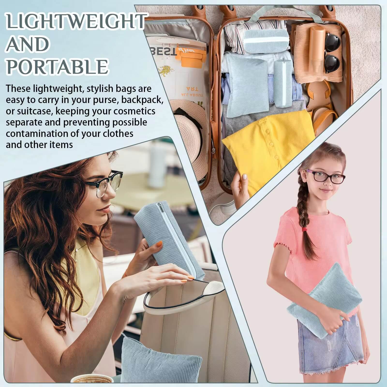 • Makeup & Skincare: The large pouch is ideal for palettes and bottles, while the medium is perfect for brushes and lipsticks.