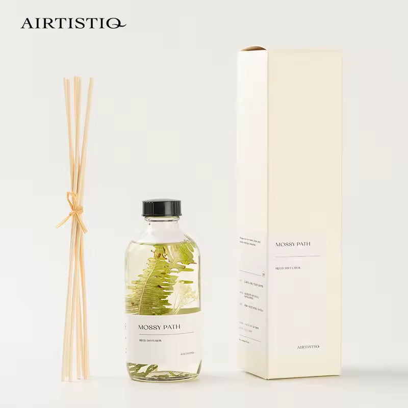 Bring nature indoors with AIRTISTIQ’s luxurious reed diffusers – where elegance meets aroma. Available in two captivating scents, Mossy Path and Rose Drizzle, each diffuser is crafted with real botanicals suspended in crystal-clear oil for a visually stunning and long-lasting fragrance experience.