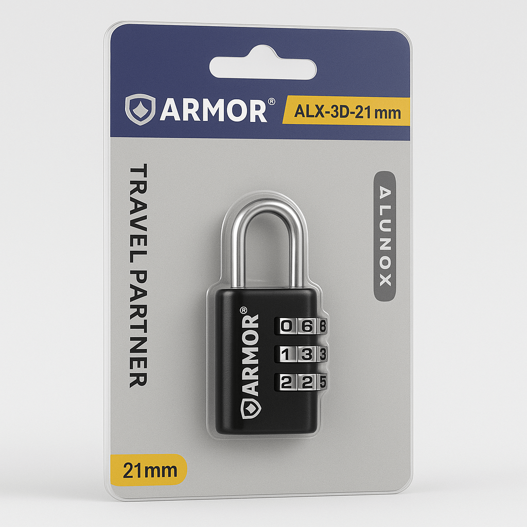 ARMOR ALX-3D Combination Padlock – 21mm, 3-Digit Code
