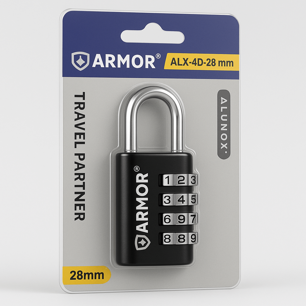 ARMOR ALX-4D Combination Padlock – 28mm, 4-Digit Code