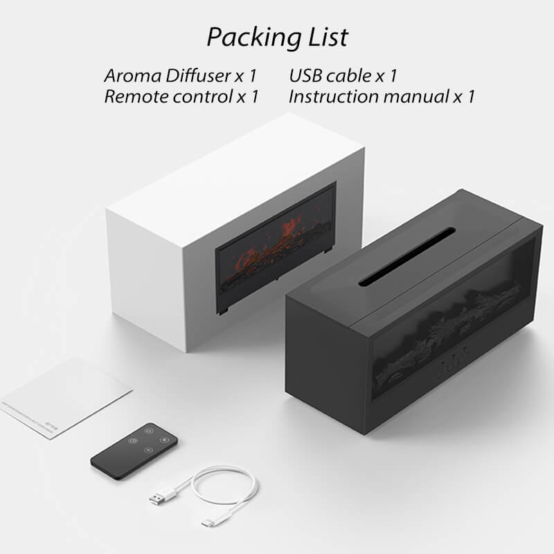 Relax and enjoy the ambiance without getting up. The diffuser comes with an infrared remote control, allowing you to adjust settings, change flame colors, and set timers with ease. Whether you’re reading on the couch or unwinding in bed, you have complete control at your fingertips.