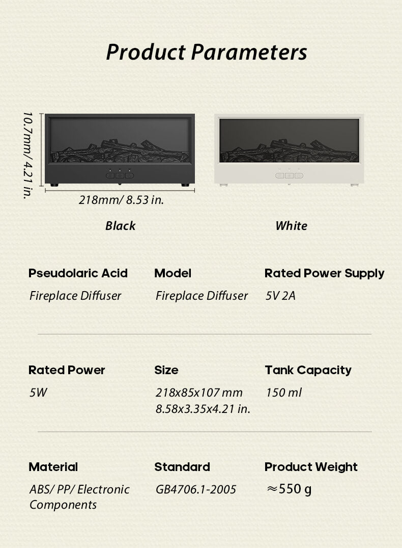 Immerse yourself in the charm of a fireplace, no matter the size of your space. The Realistic Flame Fireplace Aroma Diffuser mimics the look of burning logs with mesmerizing flame effects and a cozy glow. Its elegant design is inspired by traditional fireplaces, adding a touch of sophistication and comfort to your home or office.