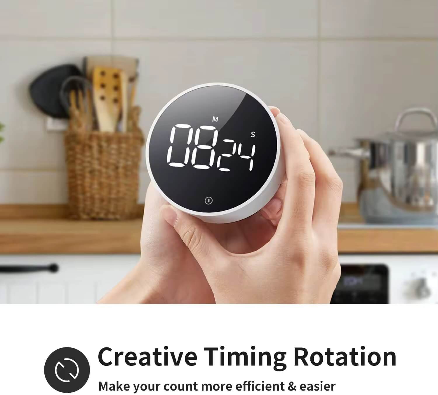 • Easy to Use Digital Timer - One key operation, no more struggles to set a timer with small buttons, just rotate to set time and press the button to start. Kids and Seniors can easily make it work too! No loud ticking, fit for cooking, housework, fitness, game, classroom, meeting, workouts and other activities