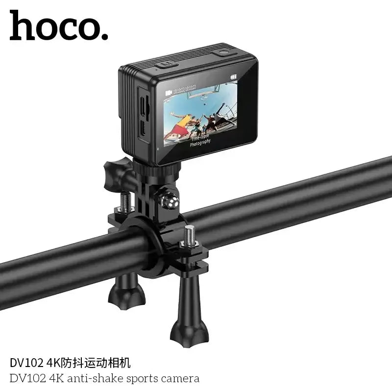 HOCO - Model : DV102 - Video resolution: 4K 30/60fps 2.7K 30fps 1080 30/60/120fps 720 30/60/120fps - Video format : MP4 JPG - Image guide : JPG - Compression format : MPGE - Sensor : GC1054 (1200w pixels) - Wifi : support - App : support - HDTV : support - Supports SD card up to 128 GB - Battery : 3.7V/900mAh - Display screen: 2-inch IPS high resolution screen/resolution: 320-2 - Input : Type -c - Size 61*32*44 mm. - Weight : 65g - Waterproof to a maximum depth of 30 meters. - black/black - Ultra wide angle 150 °