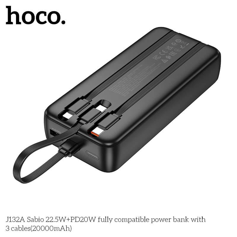 بنك طاقة J132A Sabio 22.5W+PD20W متوافق بالكامل مع 3 كابلات (20000 مللي أمبير في الساعة)