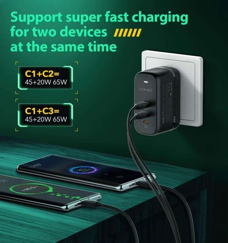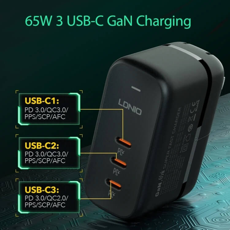 خرج C2 PD: 5 فولت/3 أمبير، 9 فولت/3 أمبير، 12 فولت/3 أمبير، 15 فولت/3 أمبير، 20 فولت/3.25 أمبير 65 واط كحد أقصى