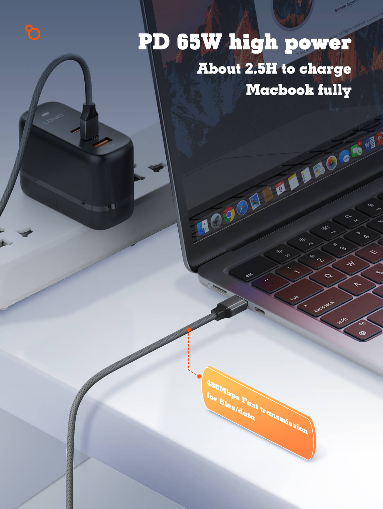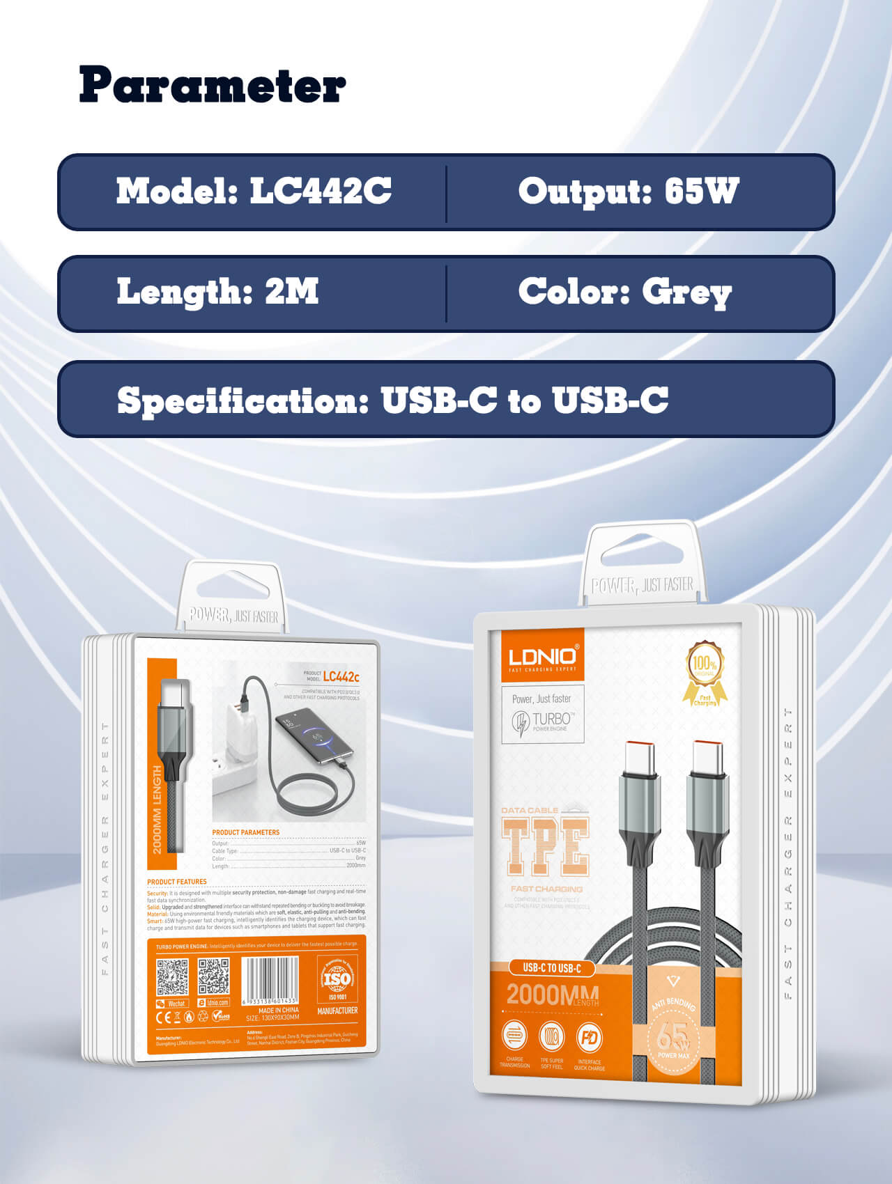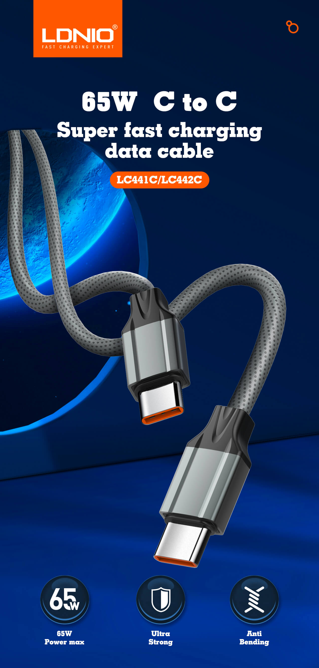 LDNIO 2 Meter 65W Type C to Type C Cable #LC442C