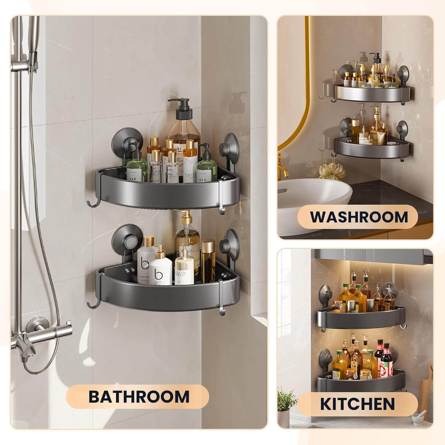 Upgrade your bathroom storage with the Taili Corner Shower Shelf, engineered with patented suction technology for unmatched grip and durability. Designed specifically for 90° right-angle corners, this rustproof shelf is your ultimate space-saving solution—no tools, screws, or damage required.