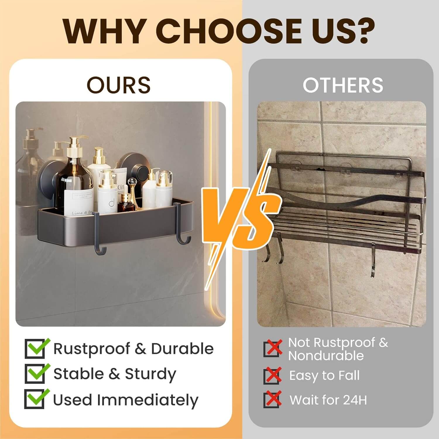 Tidy up your shower essentials with the Taili Wall-Mounted Shower Organizer – a sleek, rustproof, and ultra-sturdy solution for modern bathrooms. Designed with patented suction technology, this organizer requires no drilling, making it perfect for renters and homeowners alike. Just press to install – it’s that easy!