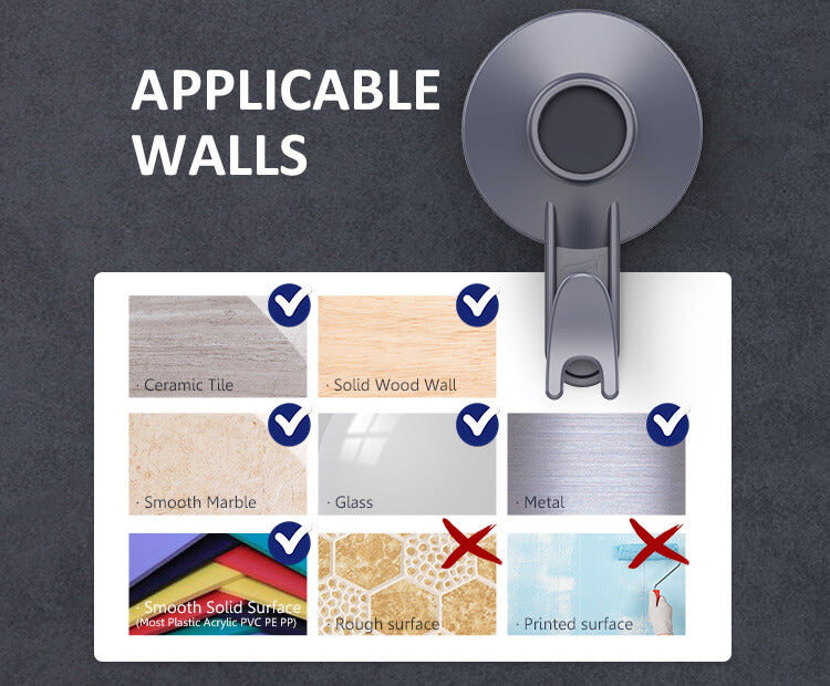 Applicable Surfaces: Ceramic tile, smooth marble, glass, solid wood walls, metal, acrylic, and other smooth solid surfaces