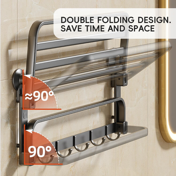Taili Double Folding Bath Towel Holder – No Drilling, Heavy-Duty & Sleek Wall Organizer