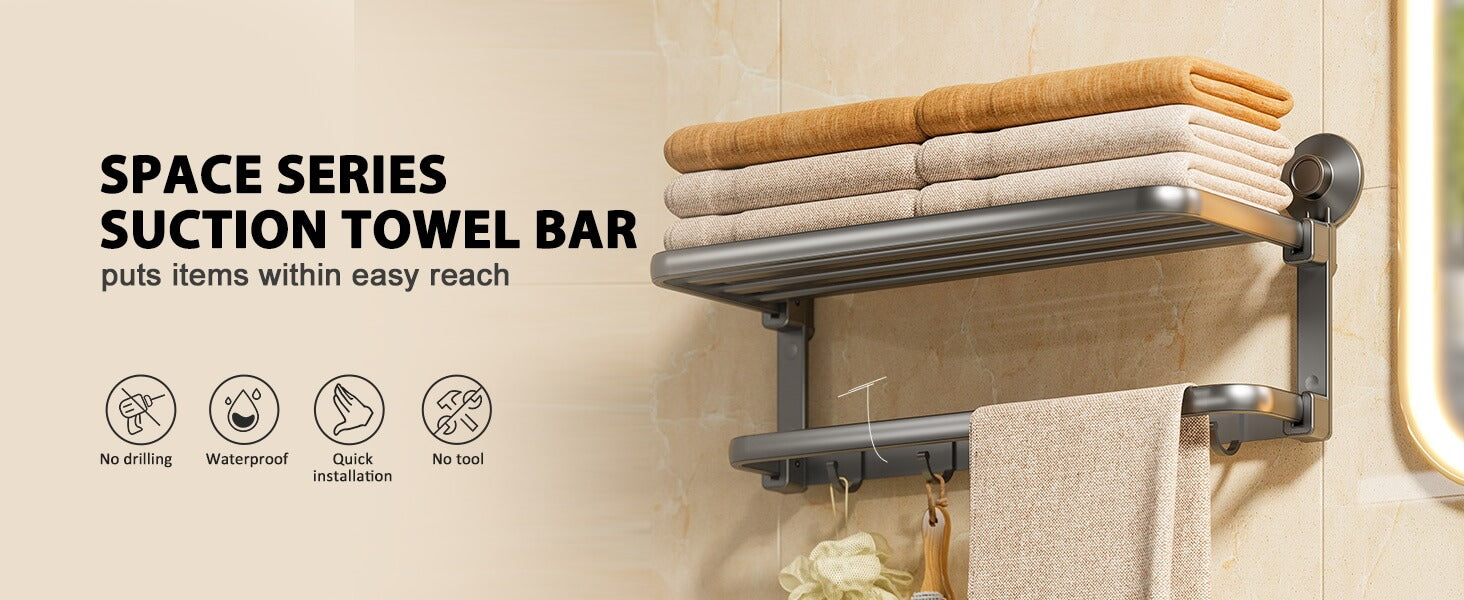 Declutter your bathroom and elevate your storage game effortlessly with Taili’s suction towel bar—built to hold strong and stay sleek.