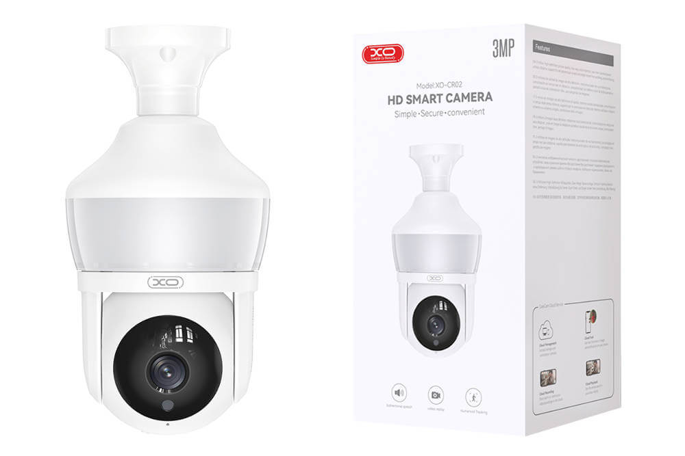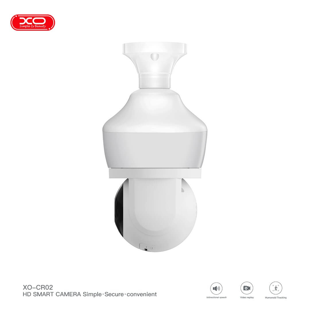 The XO CR05 adopts a bulb‑like housing combined with a built‑in 3MP WiFi camera, delivering surveillance capabilities in a disguised form factor. Measuring 159 by 86 millimeters and weighing 243 grams, this unit can be installed using a standard E27 screw base. Its 2304×1296 resolution offers a clear viewing experience through a 4mm lens with F2.0 aperture. A built‑in speaker and microphone support two‑way audio, while the camera supports both Android and iOS systems via the Heart Attachment PRO app. Operating solely on a 2.4G WiFi security camera connection, it integrates with Bluetooth for added network pairing flexibility.