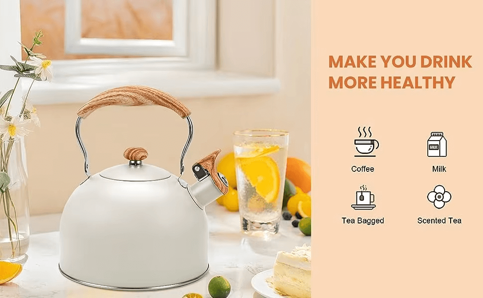 🍵 Whistle Alert – Loud and clear whistle signals when water is ready