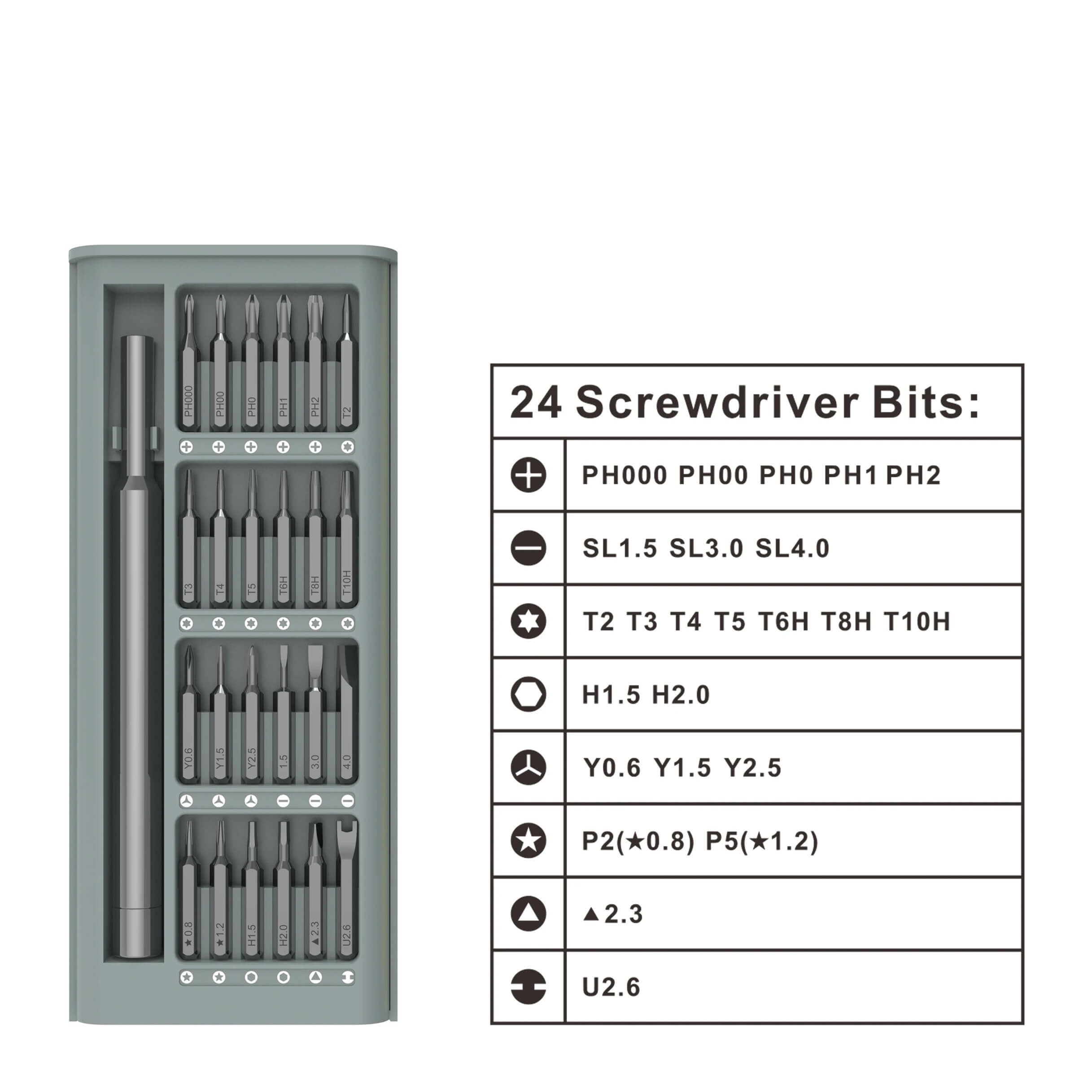 • SET SPECIFICATIONS: Small screwdriver set for a screwdriver handle configured with 24 different screwdriver bits (as shown in the picture), to ensure that you have a complete electronic toolkit to meet your daily needs, improve your work efficiency.