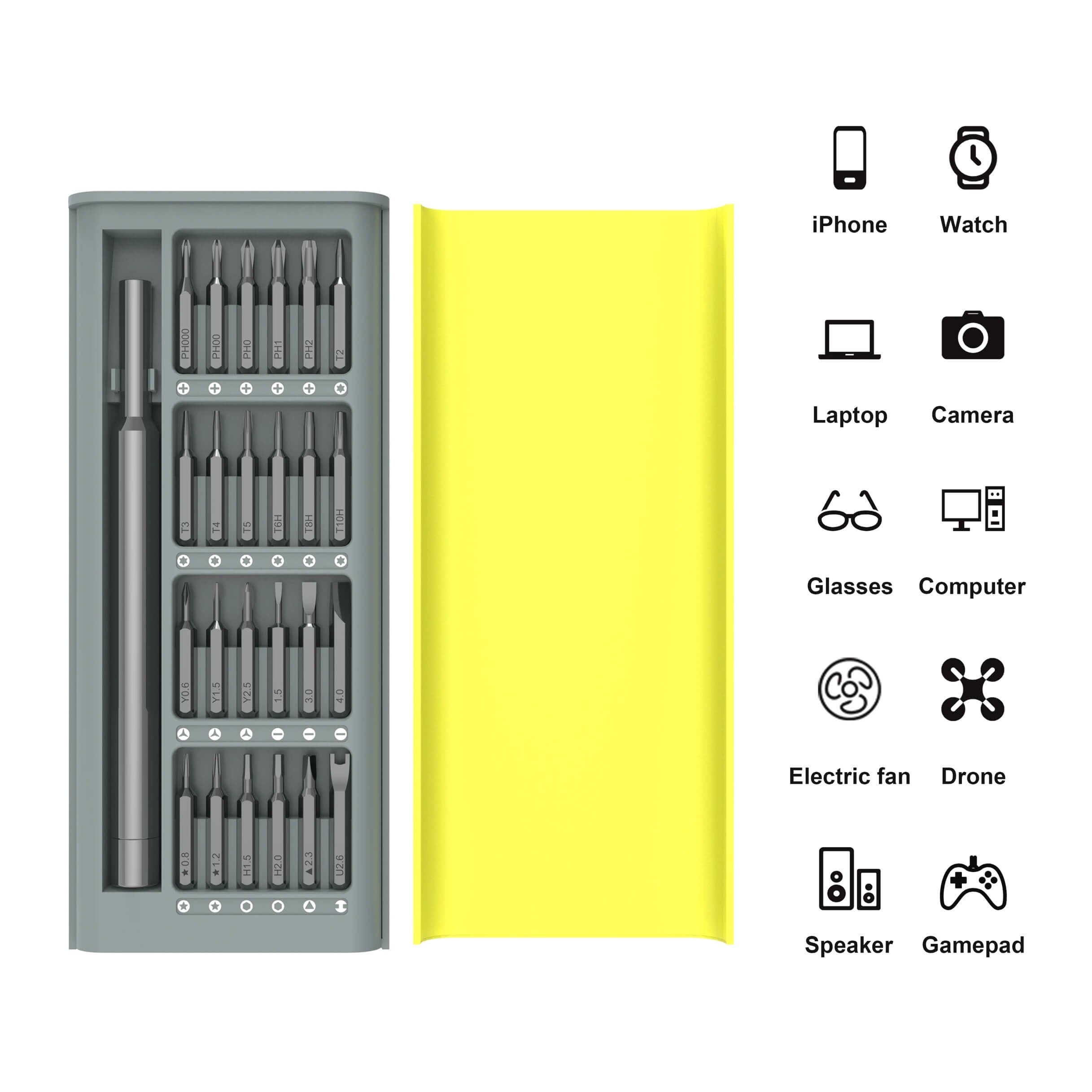 • LIGHTWEIGHT & PORTABLE STORAGE CASE: Precision screwdriver set is lightweight and durable, can be easily stored, the bits are sequentially fixed inside the case, not easy to be scattered or lost, easy to carry, can be easily put into your pocket or tool bag.