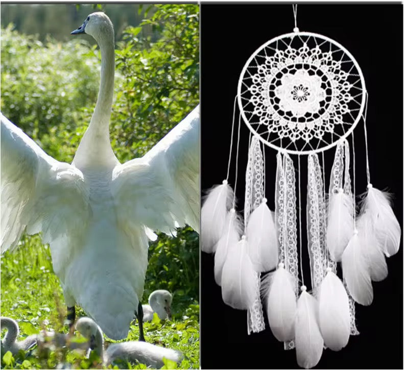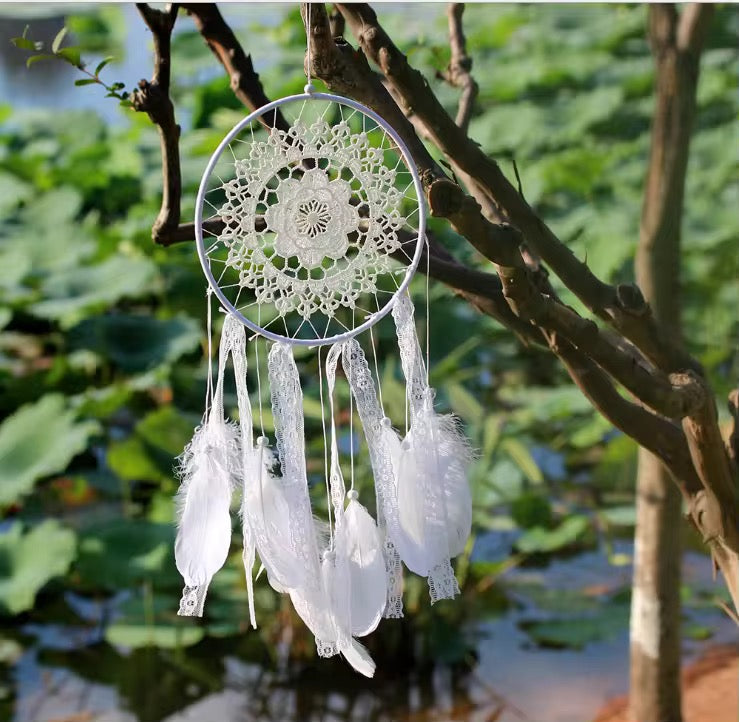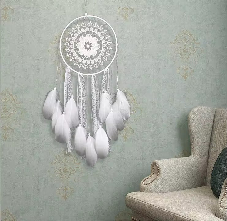 Handmade White Lace Dreamcatcher with Soft Feathers – Elegant Boho Wall Décor