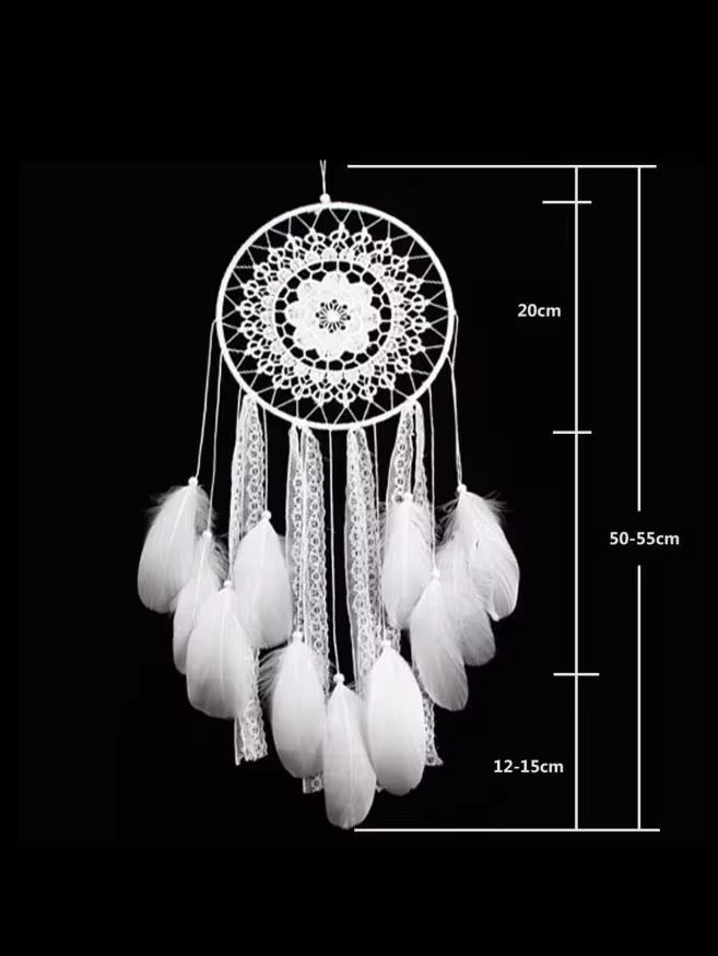 Infuse your space with elegance, purity, and peaceful energy with this Handmade White Lace Dreamcatcher, intricately crafted with a floral-patterned web and finished with delicate lace ribbons and soft white feathers. A true statement of beauty and meaning, this dreamcatcher blends traditional symbolism with modern boho aesthetics.