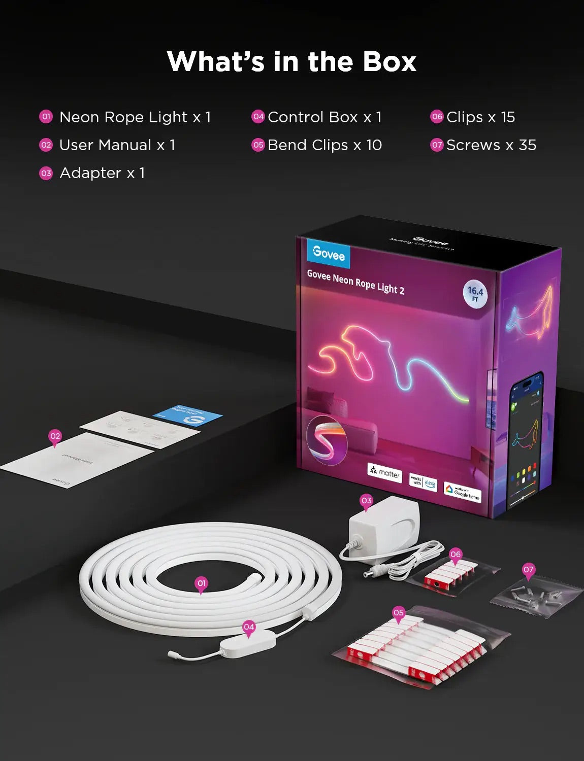 The Govee Neon Rope Light 2 is a flexible light strip available in 3-meter, 4-meter, and 5-meter lengths, designed for indoor use. You can bend it into any shape to decorate your room. The upgraded design includes softer, lighter silicone material and improved clips for easier installation. Additionally, it features shape recognition technology for easy customization.