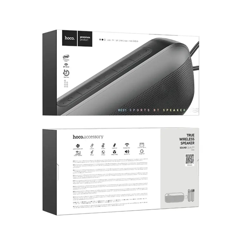* Bluetooth 5.2 Connectivity: The Hoco HC21 Shadow Sports Speaker boasts advanced Bluetooth 5.2 technology, ensuring a stable and efficient wireless connection for high-quality audio streaming.