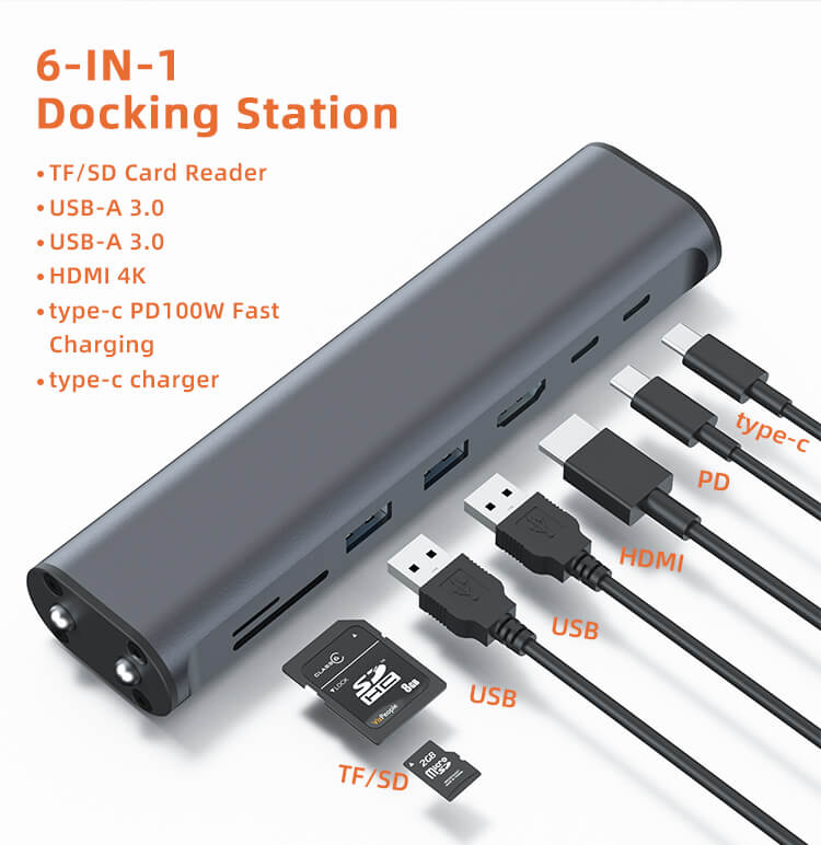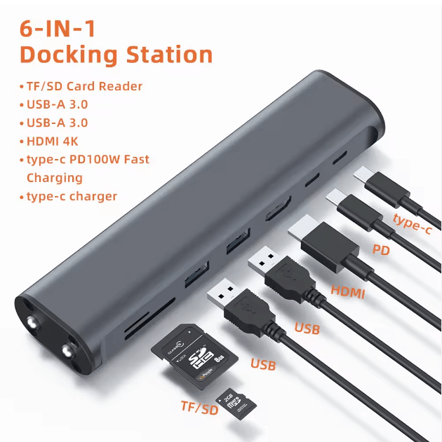Integrated Ports: Includes 2× USB-A 3.0, HDMI 4K, TF/SD card reader, and Type-C PD 100W fast charging.
