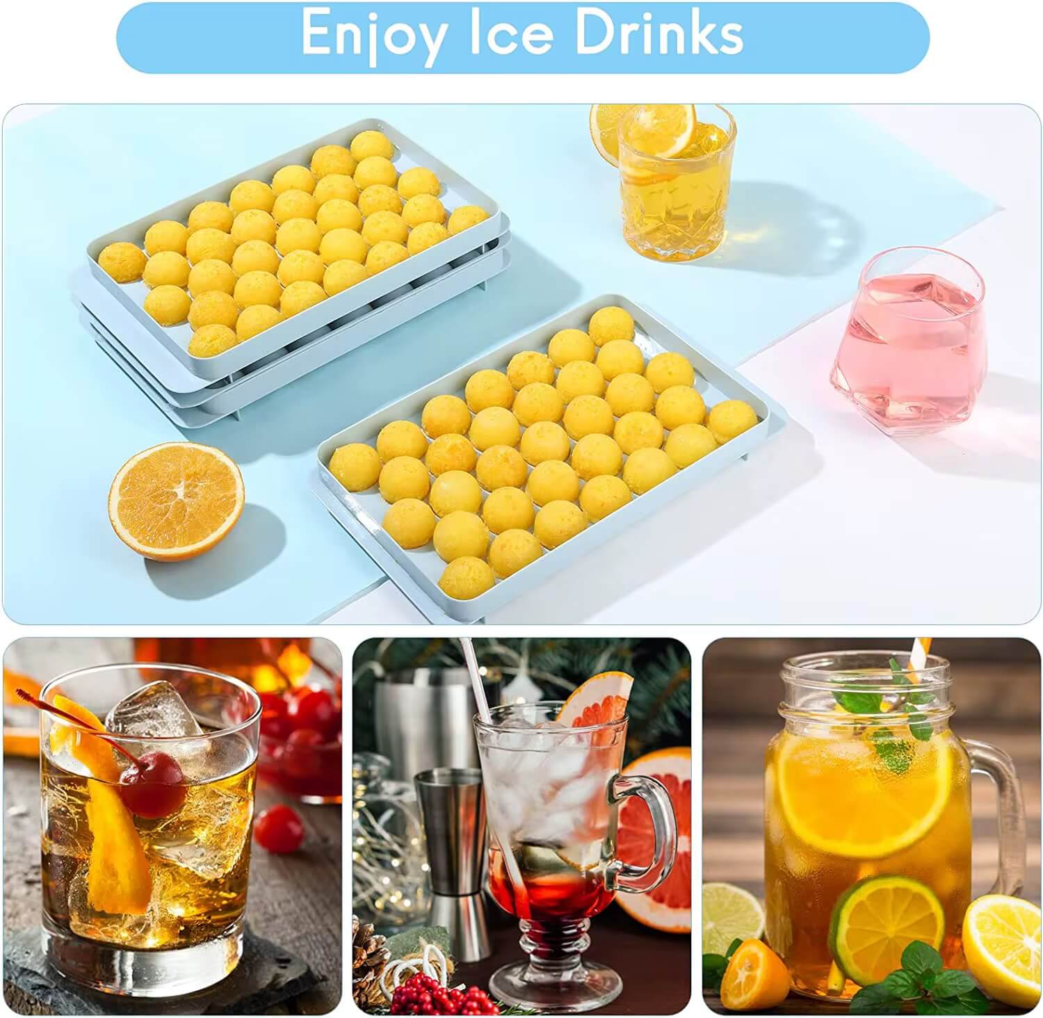 Enjoy a refreshing twist in every sip—freeze lemon slices, berries, mint, or even edible flowers right into your ice balls. A fun and practical addition to any kitchen or home bar