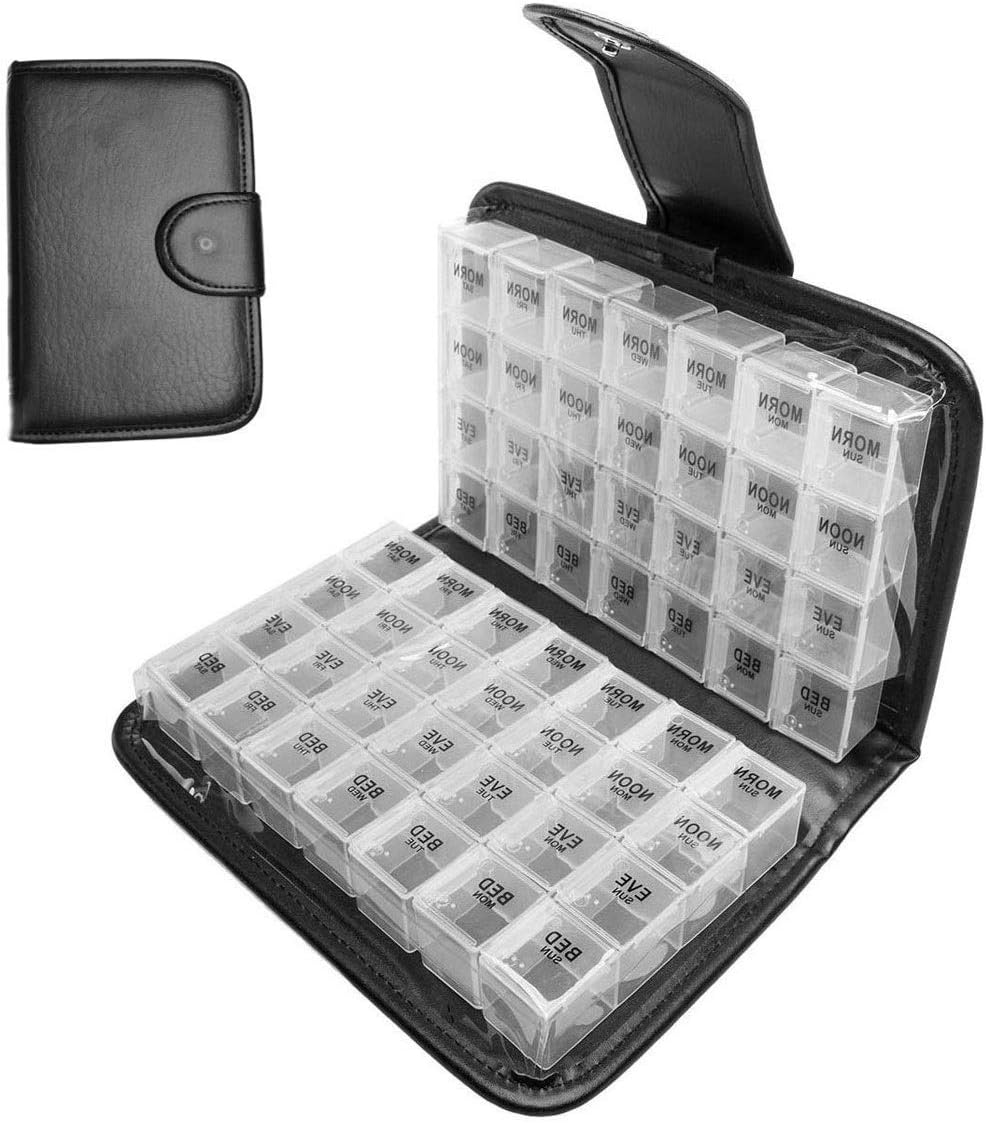 • Stylish and discreet leather bag: don't let you be embarrassed of your pills and medications and store your pills in style.With our pu leather pill case, giving you less clutter you have pills neatly stored where you can see them, so you always remember to take them