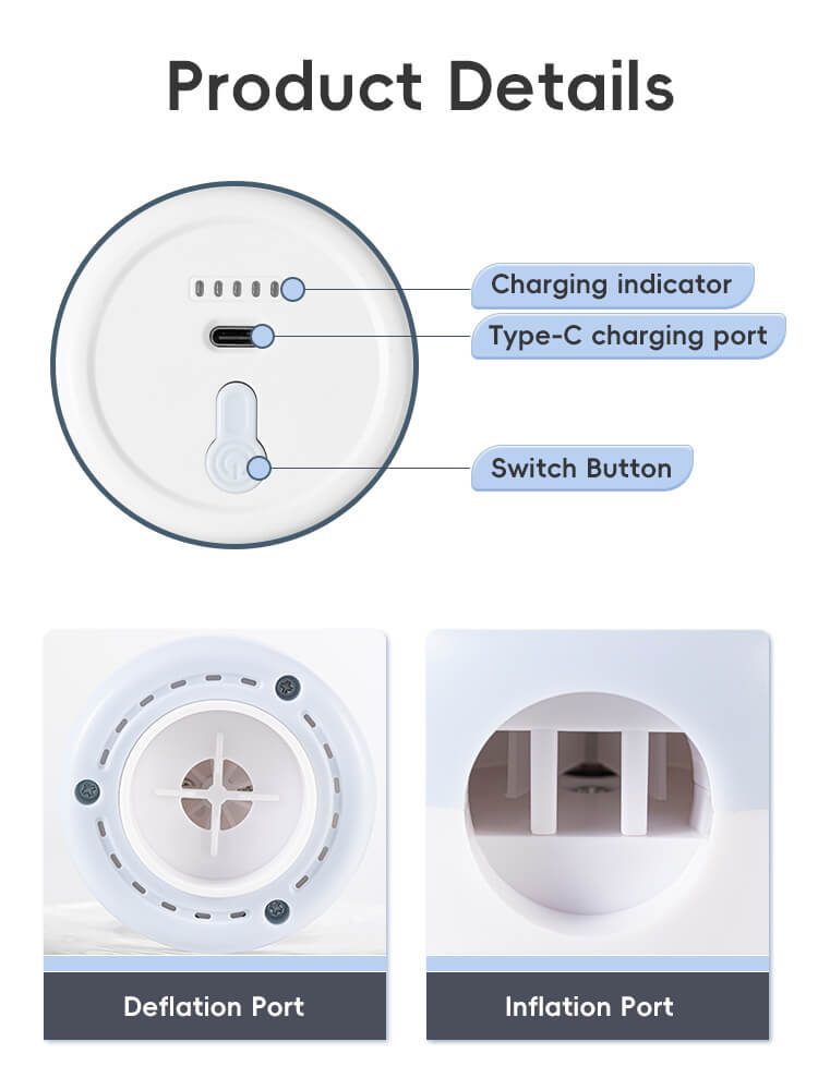 Fast & Efficient: With a 1500mAh rechargeable battery, it offers rapid inflation at 4kPa pressure.