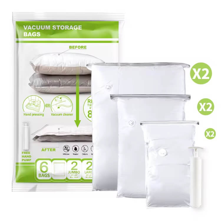 - 6 Vacuum Bags (2 Jumbo, 2 Large, 2 Medium)