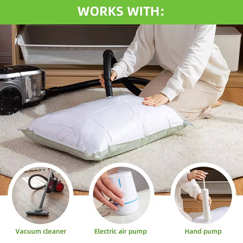 Dual use: Vacuum out air using included hand pump or any standard vacuum cleaner