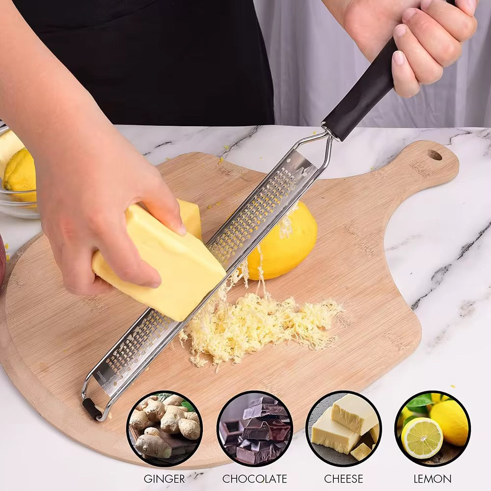 Upgrade your kitchen tools with this professional-grade zester and grater set. Perfect for zesting citrus, grating cheese, garlic, ginger, chocolate, and more with ease and precision. Crafted from ultra-sharp stainless steel, it offers durability, efficiency, and style in one sleek package.