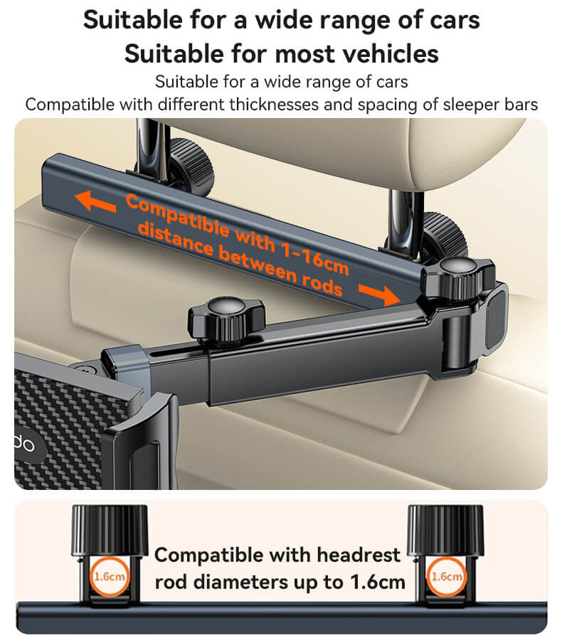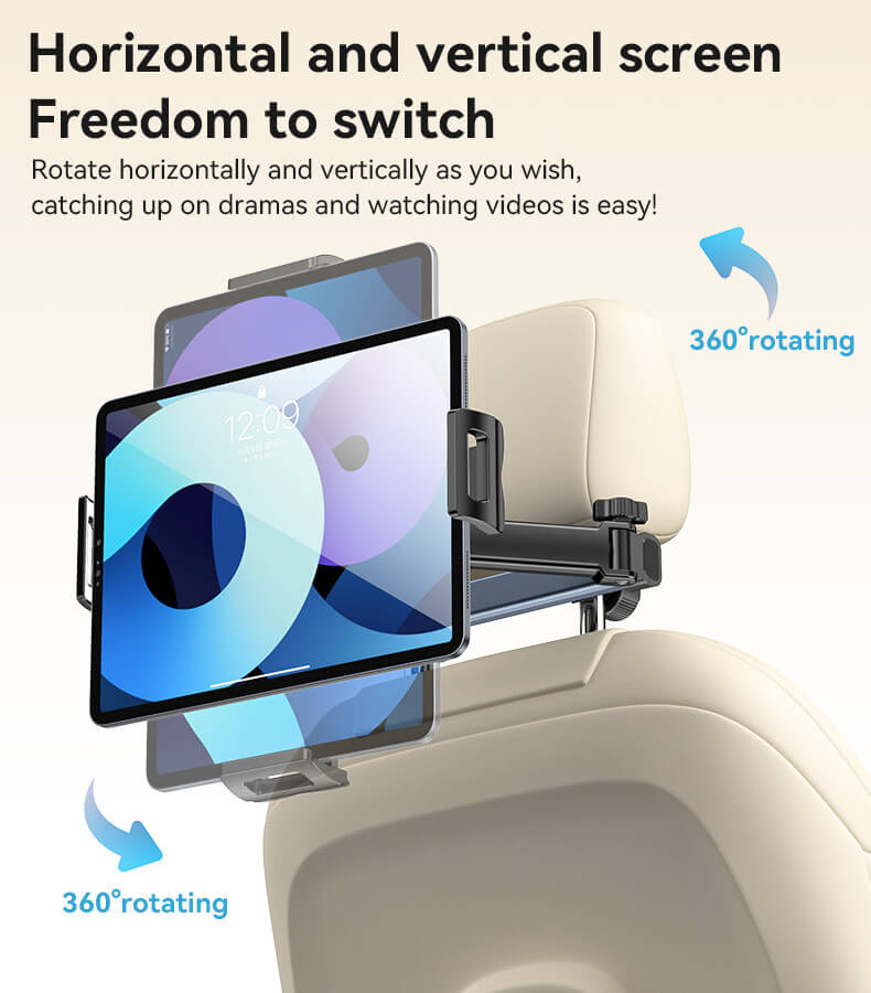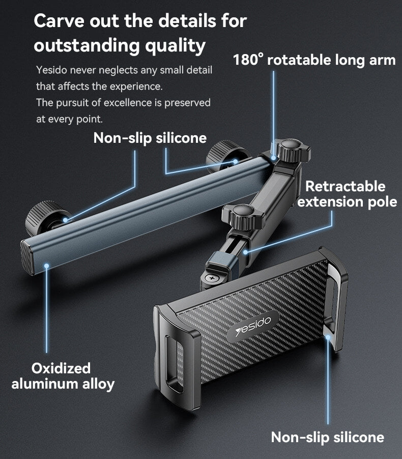 C294 Yesido 360 Rotating Extra Wide Clamping Arm Long Hip Headrest Car Phone Holder.