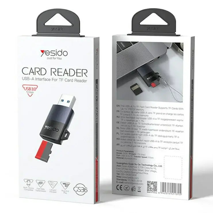 Slip this thumb-size reader into any USB-A port and turn a microSD/TF card into instant, high-speed storage for laptops, smart TVs or in-car entertainment. Built around a full USB 3.0 controller, the GS36 shifts data at up to 5 Gbps, letting you off-load 4 K drone footage or back-up holiday shots in seconds. The rugged alloy shell survives daily knocks, while the supplied lanyard keeps it ready whenever inspiration strikes.
